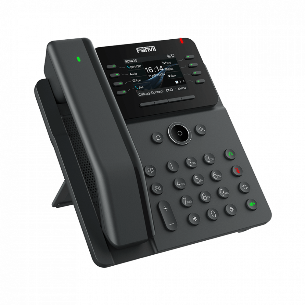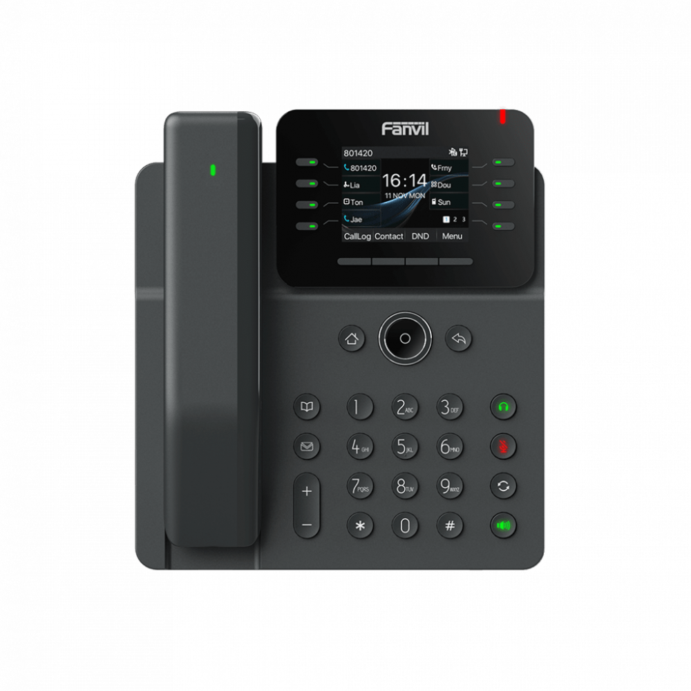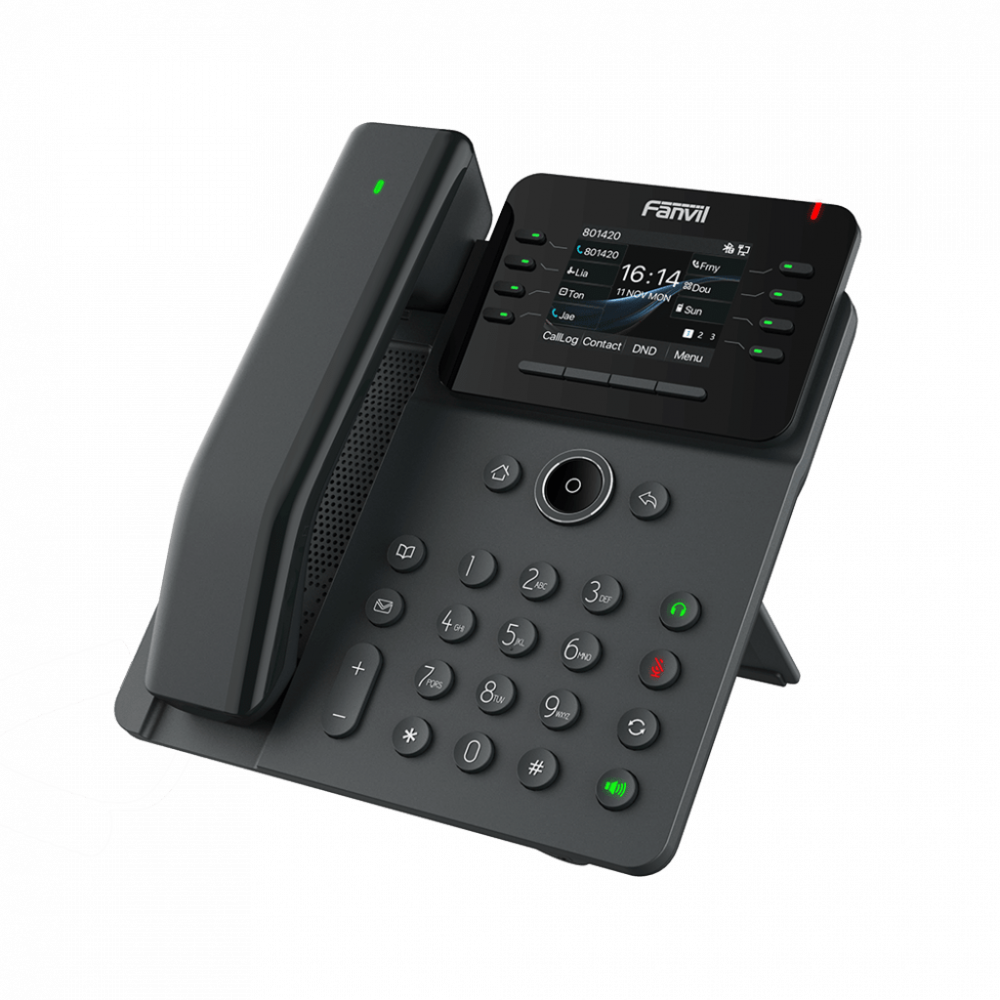 El Fanvil V62 Pro es un teléfono IP empresarial esencial que cuenta con una pantalla a color HD y un auricular Bluetooth mejorado con teclas programables para aumentar la productividad en el trabajo. Los auriculares Bluetooth son intercambiables entre todos los modelos Pro de la serie V y fáciles de localizar si se extravían, lo que garantiza una comodidad y funcionalidad superiores en el trabajo de oficina. Con 12 líneas SIP, conferencias de 6 vías y dos puertos Gigabit, el V62 Pro ofrece una experiencia de comunicación de alto rendimiento adaptada a los profesionales empresariales modernos.