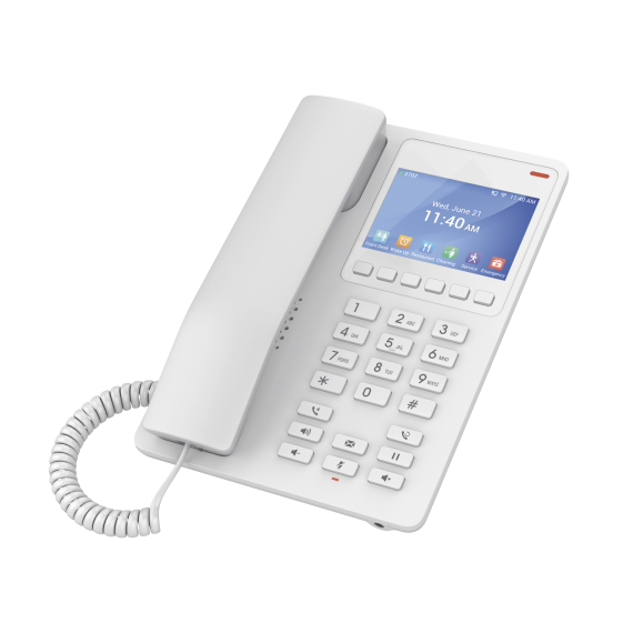 Teléfono IP Hotelero con pantalla LCD a color, 2 líneas SIP con 2 cuentas, codec Opus, IPV4/IPV6, color blanco, con gestión en la nube GDMS GHP630