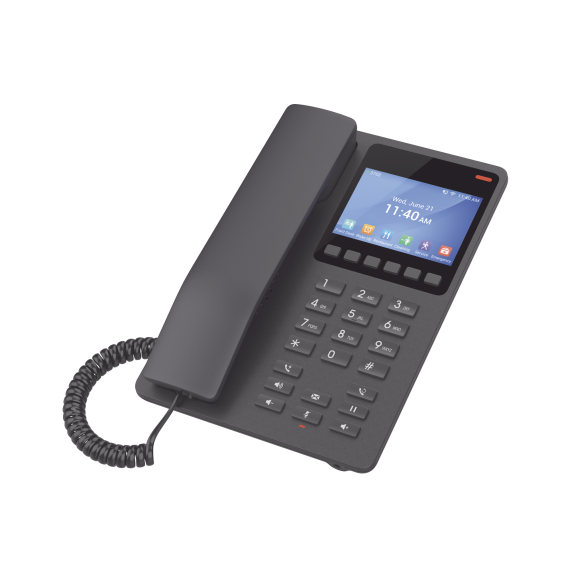 Teléfono IP Hotelero con pantalla LCD a color, 2 líneas SIP con 2 cuentas, codec Opus, IPV4/IPV6, color negro, con gestión en la nube GDMS GHP631