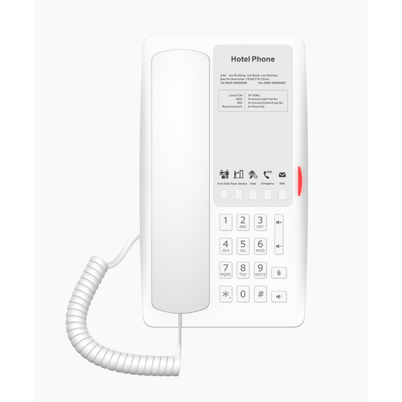 El Fanvil H4WB es un teléfono IP de uso hotelero con conectividad Wi-Fi 6 dual-band (2.4GHz / 5GHz), diseñado para ofrecer una experiencia de comunicación moderna, eficiente y sin cables. Su elegante diseño incluye 5 teclas programables para servicios de habitación, PoE integrado, puerto USB para carga, y compatibilidad con plataformas VoIP populares. Ideal para hoteles, hospitales, centros comerciales y más.