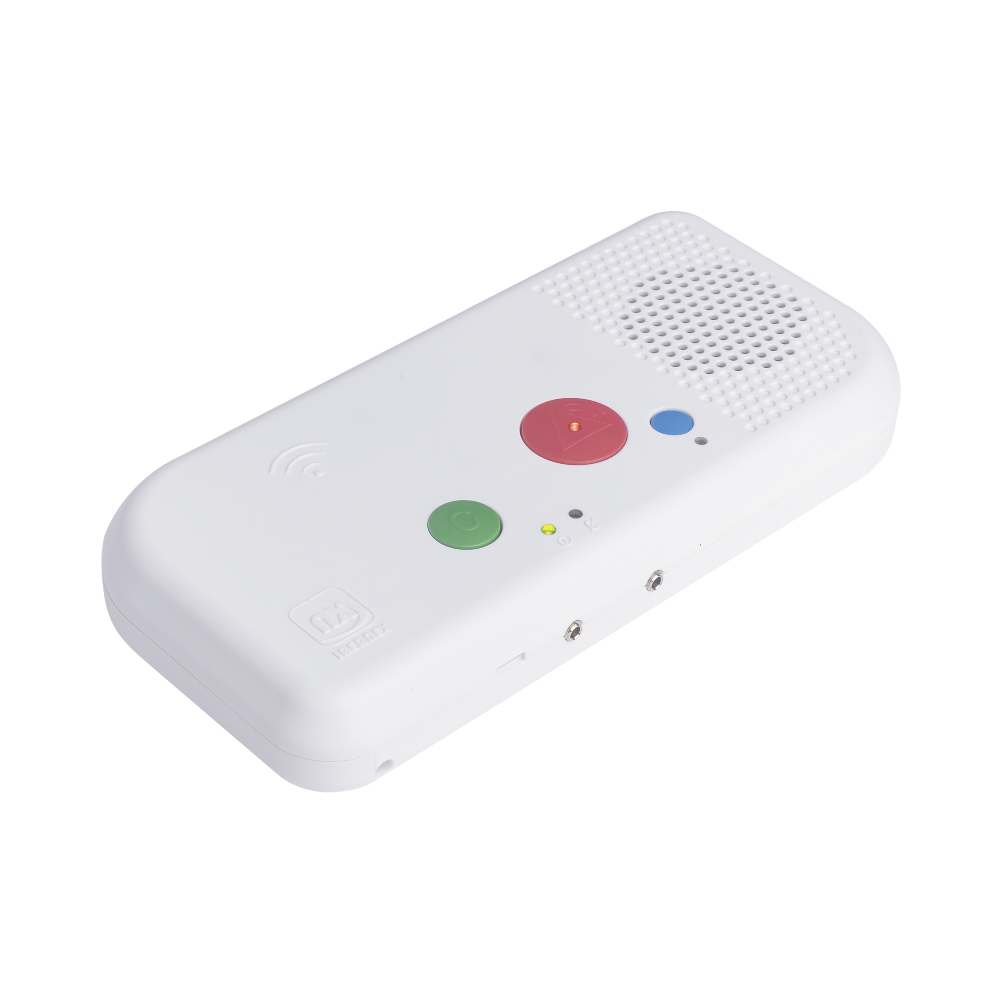 Posee tres botones que permiten generar y cancelar alarmas asistenciales, incluyendo el botón azul para llamada de médico. Además, gracias a su lector RFID integrado, el personal del centro puede identificarse mediante tarjeta y registrar presencia en la habitación.