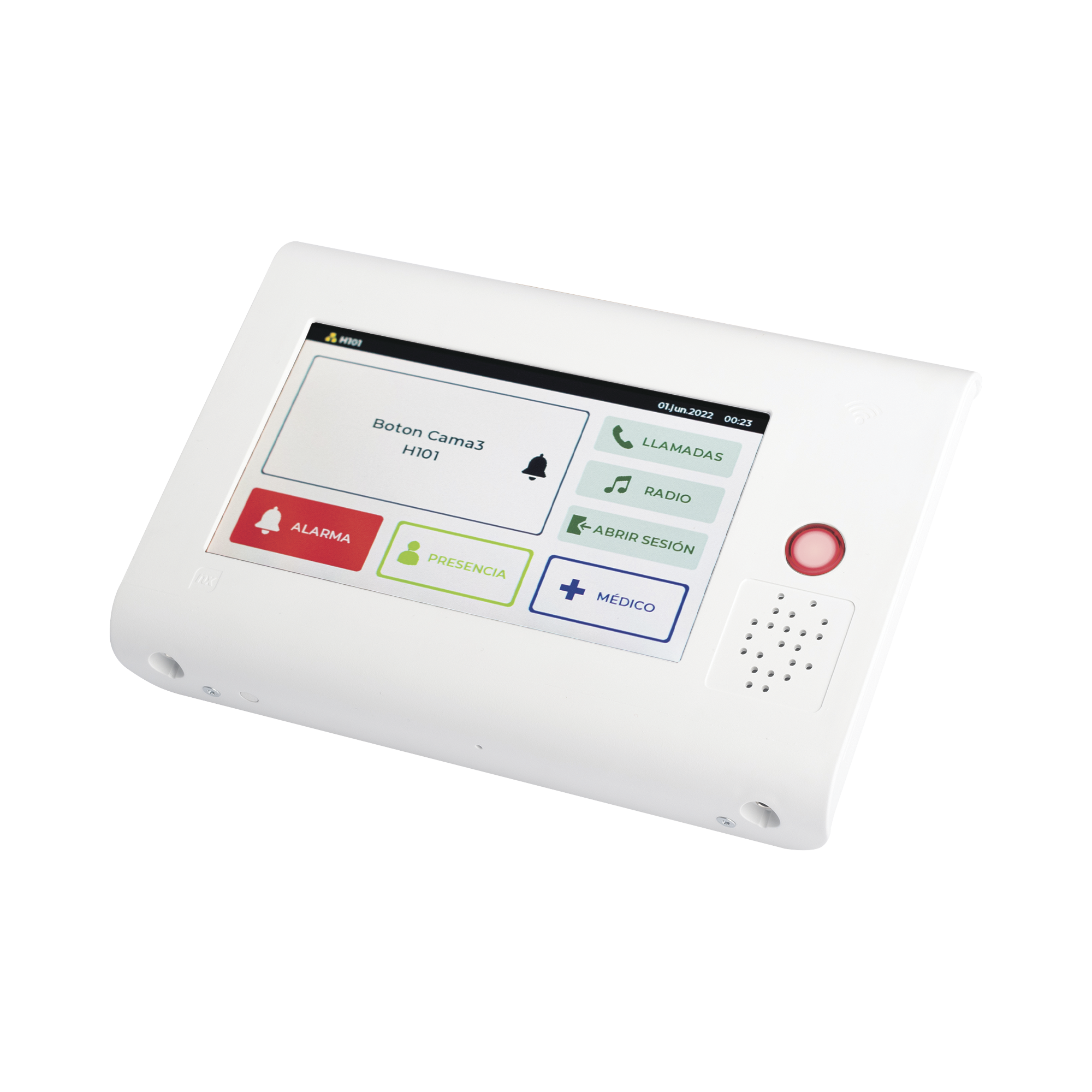 Terminal de Habitación IP para Hospitales / Lector RFID 125 KHz / Audio Bidireccional / SIP / PoE / Pantalla Táctil 7\" / Compatible con NX1071 y NX1075 NX1021