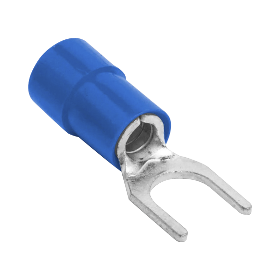 Terminal tipo horquilla ( espada ) aislada / 18 - 14 AWG / Azúl / Paquete de 25 piezas. RB1157