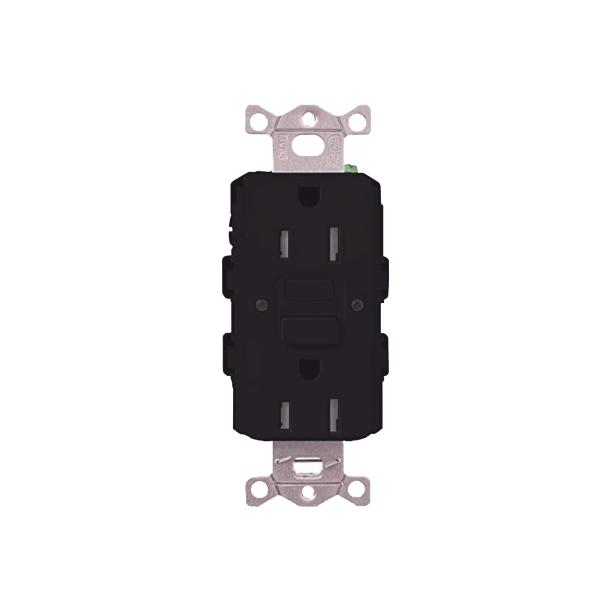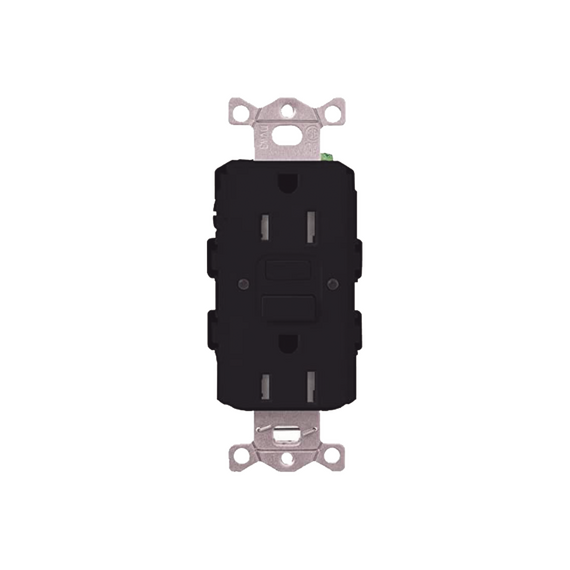 Tomacorriente 125V 15A resistente a manipulaciones, color negro. CAR-15-GFST-BL-S