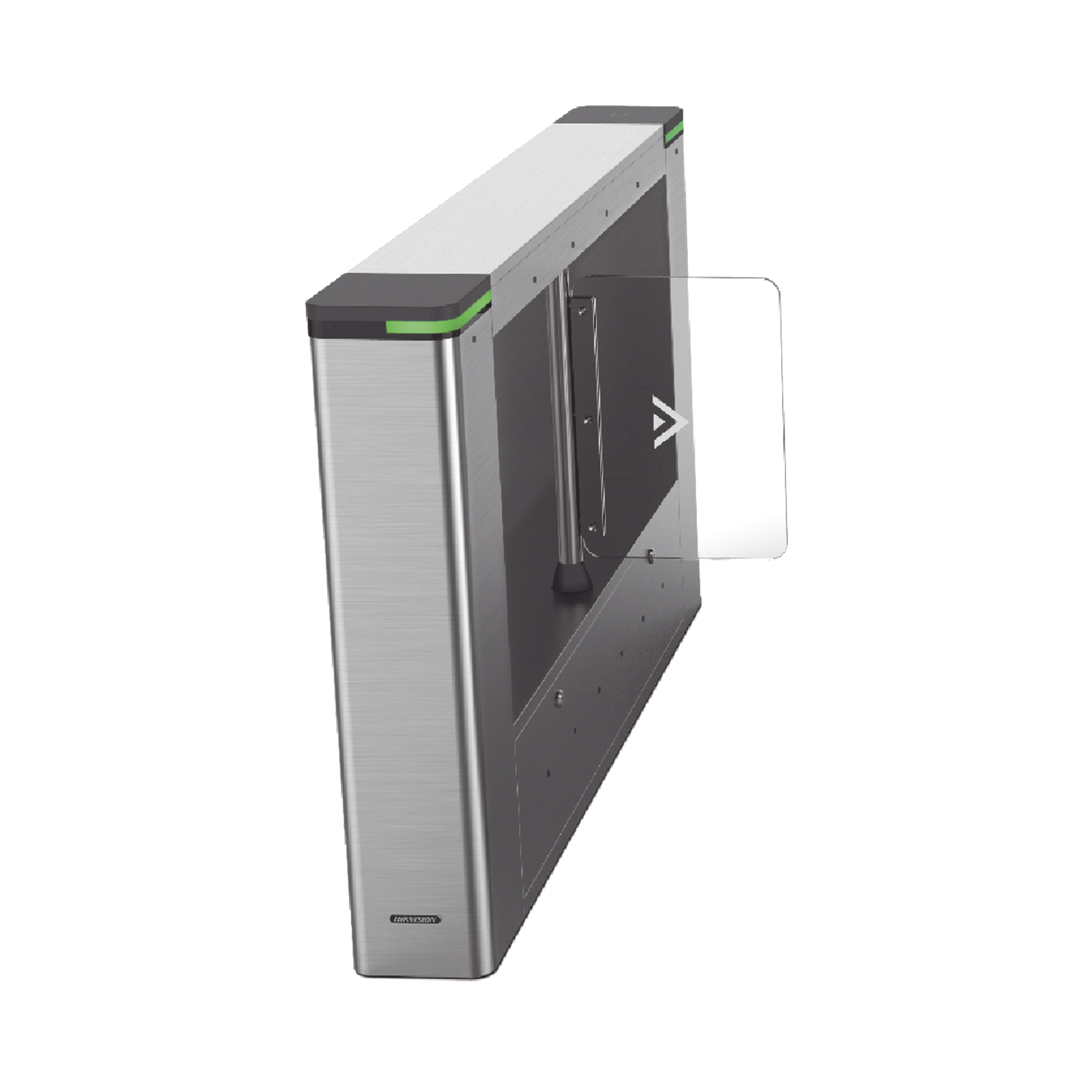 La solución de el Torniquete Izquierdo (DS-K3B501SX-L/M-DP90) + el Torniquete Derecho (DS-K3B501SX-R/M-DP90) es para crear un carril de 90 cms para el paso de la gente, las aletas son de Acrílico y el material del torniquete es acero inoxidable.
