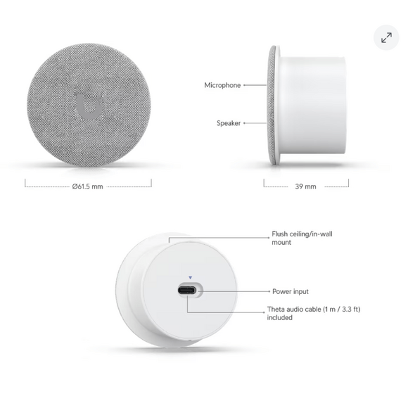 UBIQUITI KIT UVC-AI-THETA + UVC-AI-THETA-AUDIO - Kit de videovigilancia que integra cámara modular y módulo de audio para captura de video y sonido en interiores. Diseño discreto, analítica inteligente y gestión centralizada mediante UniFi Protect. UBIQUI
