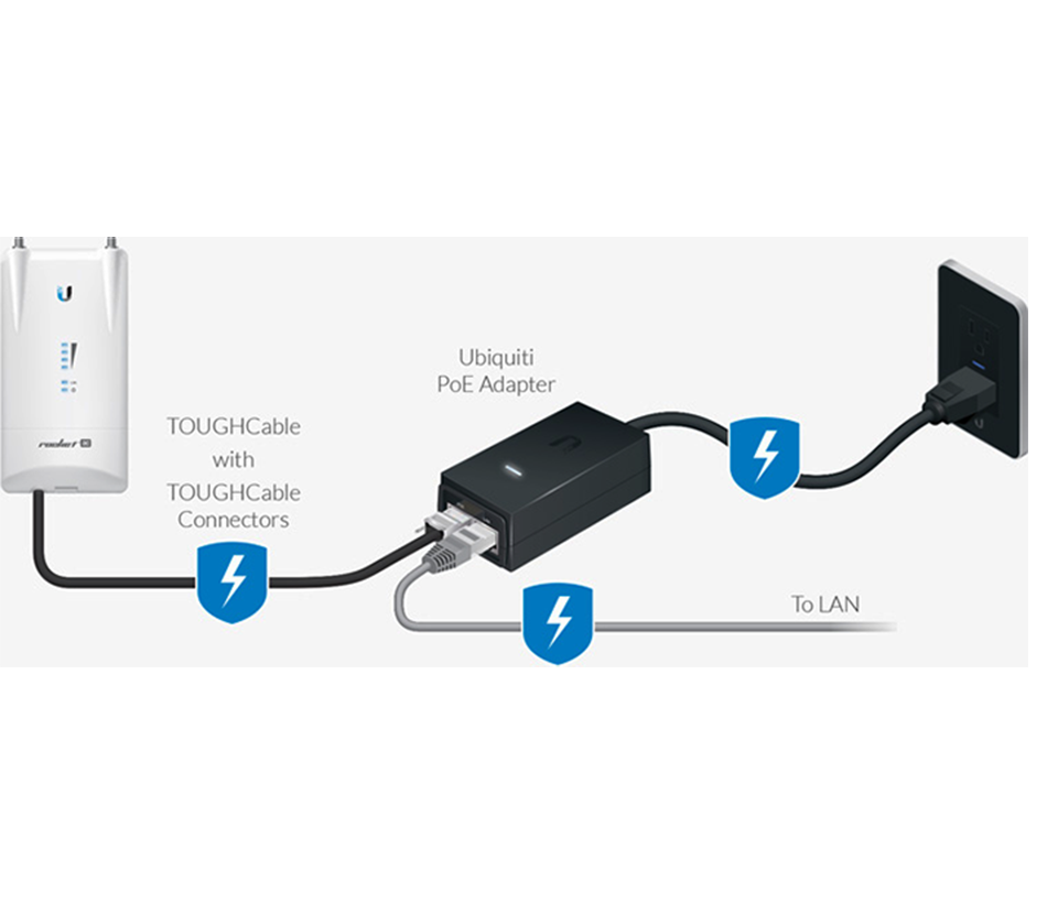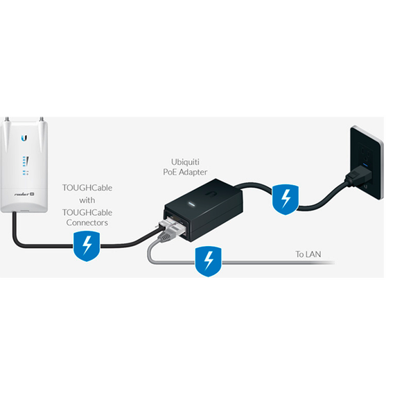 UBIQUITI POE-24-24W - Inyector PoE pasivo para equipos Ubiquiti de 24V DC a 1.0A y función de reset remoto. POE-24-24W