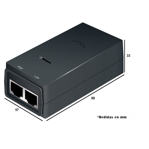 UBIQUITI POE-24-24W - Inyector PoE pasivo para equipos Ubiquiti de 24V DC a 1.0A y función de reset remoto.