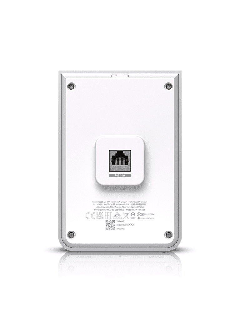 UBIQUITI U6-IW - Punto de Acceso para pared WiFi 6/ Frecuencia de operación 2.4GHz y 5GHz/ Capacidad de transmisión de hasta 5.3Gbps/ 4 Puertos secundarios RJ-45 U6-IW
