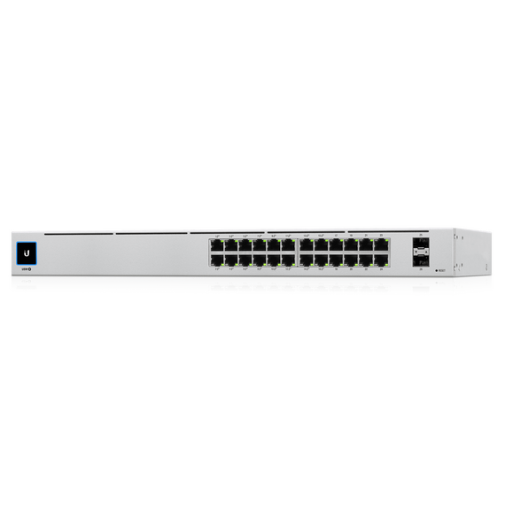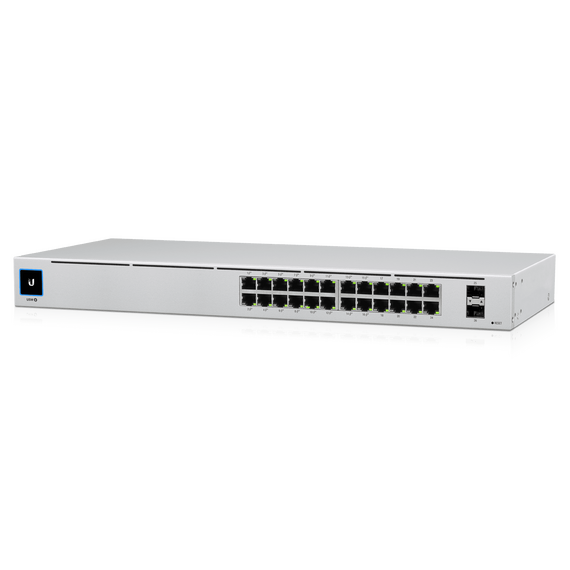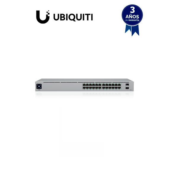 UBIQUITI USW-24-POE UniFi Switch Gen2, Capa 2 de 24 puertos (16 PoE 802.3af/at + 8 Gigabit) + 2 puertos 1G SFP, con 95W de potencia y pantalla informativa.