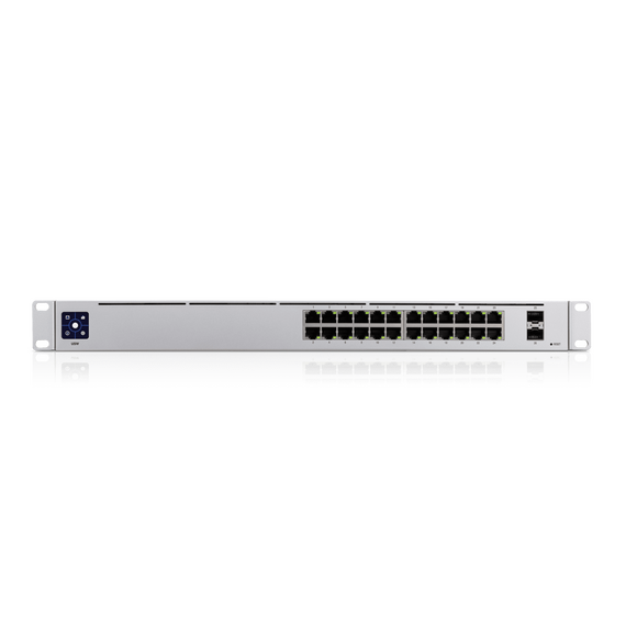 UBIQUITI USW-24 UniFi Switch Capa 2 de 24 puertos 10/100/1000 Mbps más 2 puertos 1G SFP, con pantalla informa USW-24