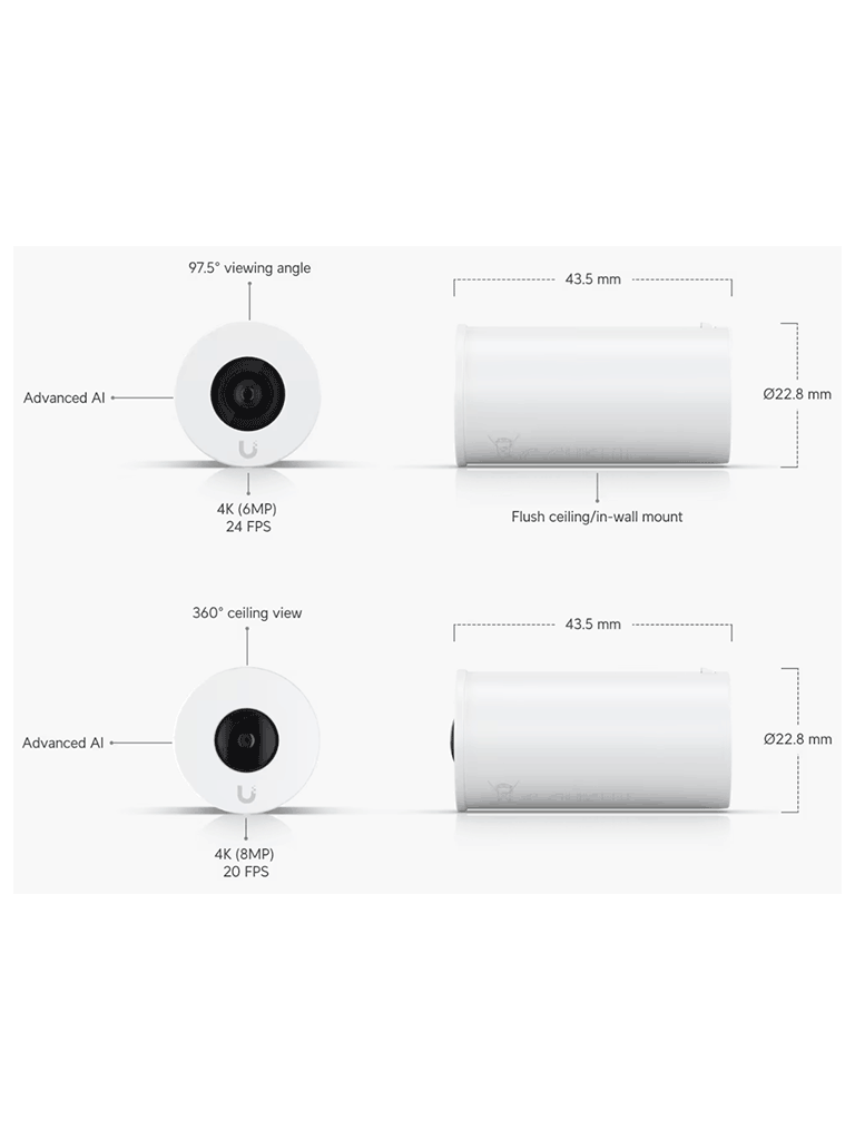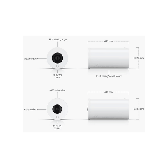 UBIQUITI UVC-AI-THETA - Camára IP Ultra compacta para interiores, Lente de 8 Megapixeles 4K y Lente de 6 Megapixeles 4K Panoramico 360º, Deteccion avanzada IA, 1 puerto de Video Theta, 1 puerto de Audio Theta, PoE