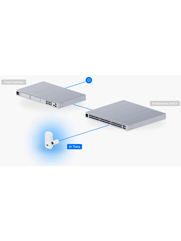 UBIQUITI UVC-AI-THETA - Camára IP Ultra compacta para interiores, Lente de 8 Megapixeles 4K y Lente de 6 Megapixeles 4K Panoramico 360º, Deteccion avanzada IA, 1 puerto de Video Theta, 1 puerto de Audio Theta, PoE UVC-AI-THETA
