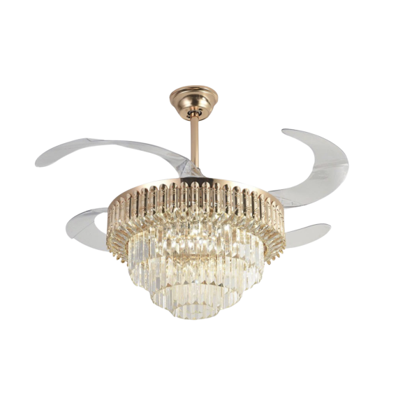 - Ventilador de techo de cristal con aspas de acrílico transparentes retráctiles de ABS, lámpara de LED ideal para sala de estar, comedor y dormitorio.