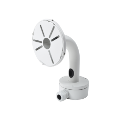 Montaje universal cuello de ganso para cámaras domo y bala, incluye la caja de conexiones robusta para instalación en exterior, el diseño del cuello evita que algun liquido regrese a la caja de conexión.