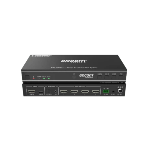 Videowall 4K 1x4 | HDMI & USB-C | 8 Modos de Visualización | Audio Óptico/Analógico | Control RS-232/IR | Plug & Play EPC-TWB14