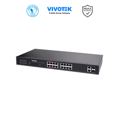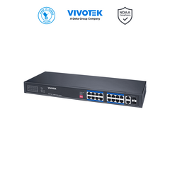 VIVOTEK AW-FGT-180P-250 - Switch PoE no administrable con 16 puertos PoE FE RJ45, 2 puertos Combo GE RJ45/SFP, 30W por puerto, 250W totales, Modo Extendido Adaptable hasta 250m, 7.2 Gbps y protección 6KV.