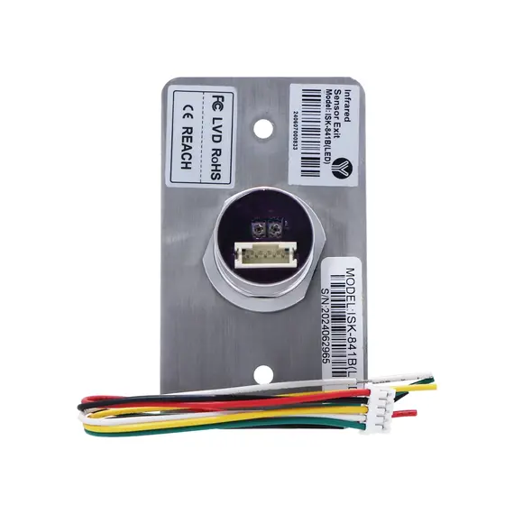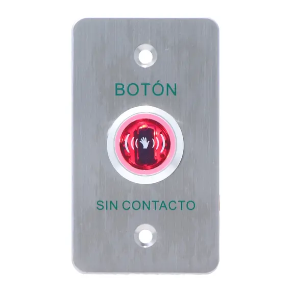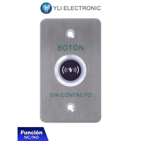 YLI ISK841BLED - Botón de Salida sin Contacto, Indicador LED, Acero Inoxidable, 12 VCC, Función NC/NO, Distancia de Detección y Retardo del Relevador Ajustables
