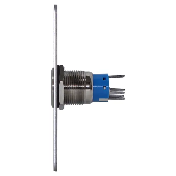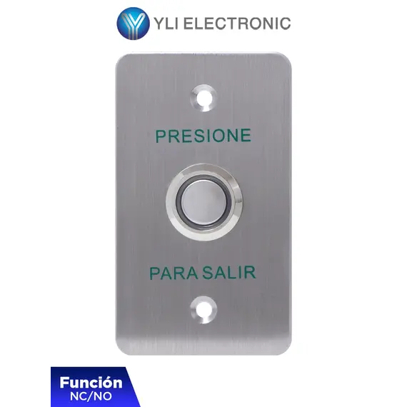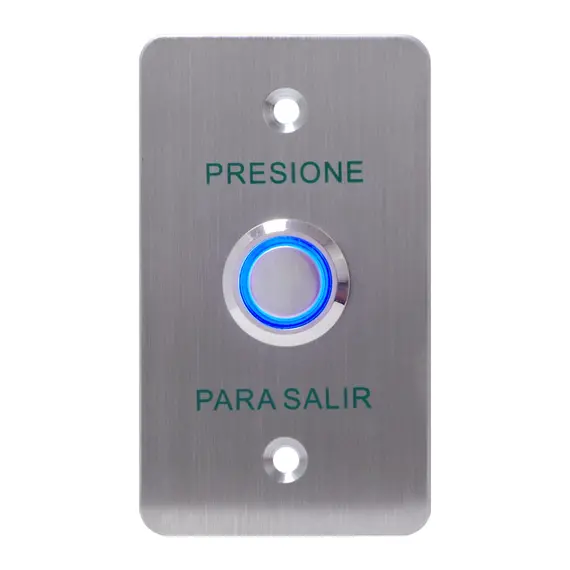 YLI PBK814BLED - Botón de Salida Mecánico, Indicador LED (Azul), Acero Inoxidable, 12 VCC, Función NC/NO PBK-814B(LED)