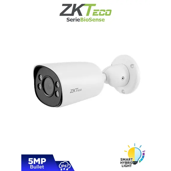 ZKTECO BS-855P32C-S8-MI-S-HL – Cámara IP Bullet Híbrida Inteligente de 5 MP, Serie BioSense, Lente 3.6 mm, Micrófono Integrado, Video Analítico IVA, Visión nocturna híbrida: IR 40 m / Luz blanca 30 m, PoE, IP67, Onvif y Carcasa Metálica