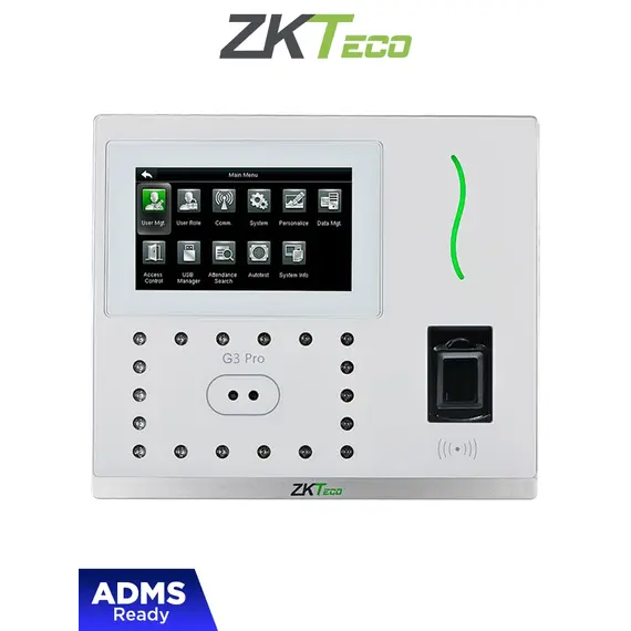 ZKTECO G3PRO -Control de Asistencia y Acceso con Autenticación Facial (12000 Rostros), Huella Digital BioID+ (20000), Tarjeta ID 125 KHz (20000), Verificación Palma (6000), Registro de 200,000 Eventos, Green Label y TCP/IP
