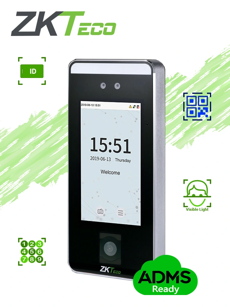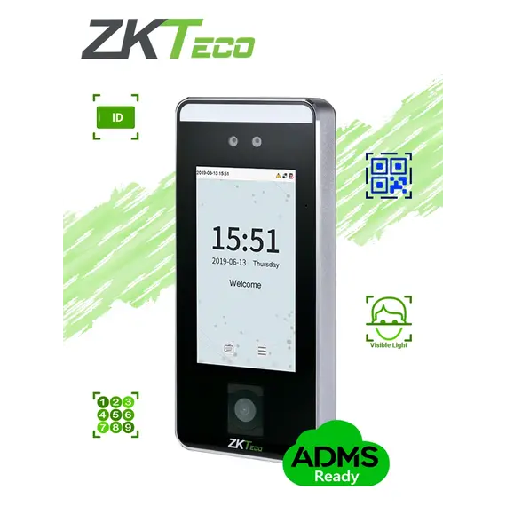 ZKTECO SPEEDFACEV5LQR - Control de Acceso Facial / 6000 Rostros / 10,000 Tarjetas ID 125 Khz / QR / Contraseñas / 200,000 Registros / Reconocimiento en 0.35 s / Algoritmo Anti-spoofing / TCP/IP / WIEGAND / RS-485 / SpeedFace-V5L[QR]