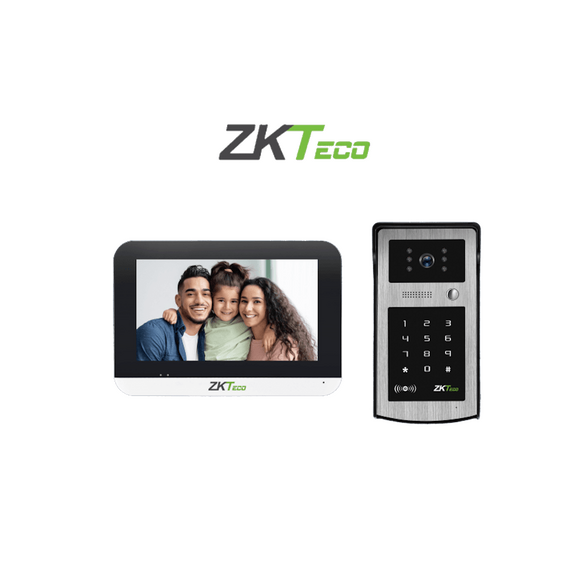 ZKTECO VK07B53LKit- Kit de Videoportero IP / Monitor Color de 7 Pulgadas / Frente de Calle IP55 / Cámara 1080P / PoE / Apertura con Tarjetas ID (125Khz) y Contraseña / Excelente Visión Nocturna
